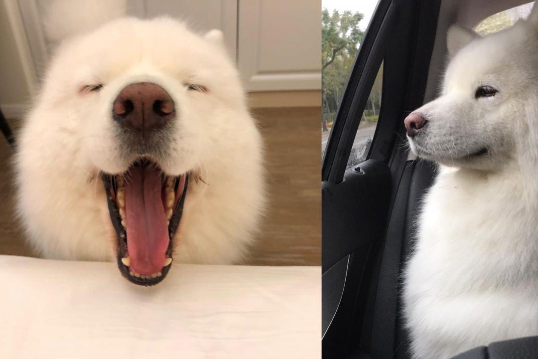 薩摩耶犬哭哩全身毛茸茸地像棉花一樣,牠還有個狗妹妹哈士奇摩卡。(圖片提供/Instagram@koori_mocha)